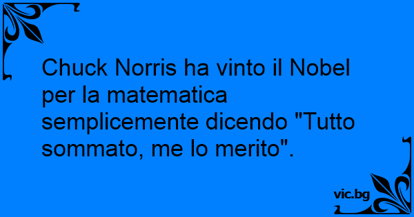 Chuck Norris ha vinto il Nobel per la matematica semplicemente dicendo "Tutto sommato, me lo merito".