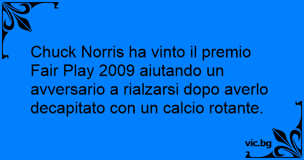 Chuck Norris ha vinto il premio Fair Play 2009 aiutando un avversario a rialzarsi dopo averlo decapitato соn un calcio rotante.