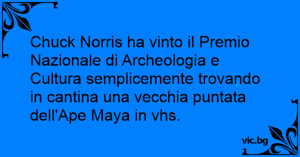 Chuck Norris ha vinto il Premio Nazionale di Archeologia e Cultura semplicemente trovando in cantina una vecchia puntata dell'Ape Maya in vhs.