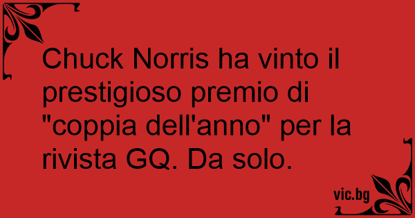 Chuck Norris ha vinto il prestigioso premio di "coppia dell'anno" per la rivista GQ. Da solo.