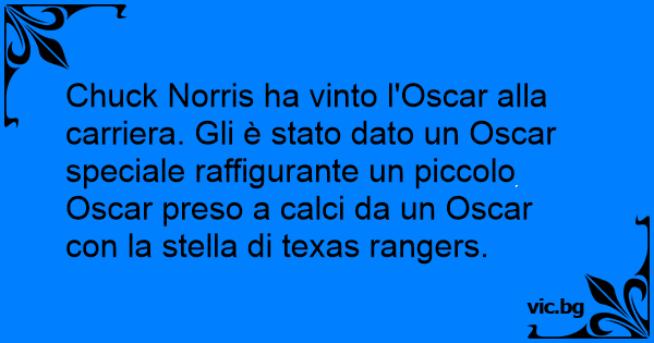 Chuck Norris ha vinto l'Oscar alla carriera. Gli è stato dato un Oscar speciale raffigurante un piccolo Oscar preso a calci da un Oscar соn la stella di texas rangers.