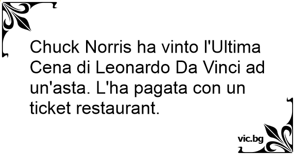Chuck Norris ha vinto l'Ultima Cena di Leonardo Da Vinci ad un'asta. L'ha pagata соn un ticket restaurant.