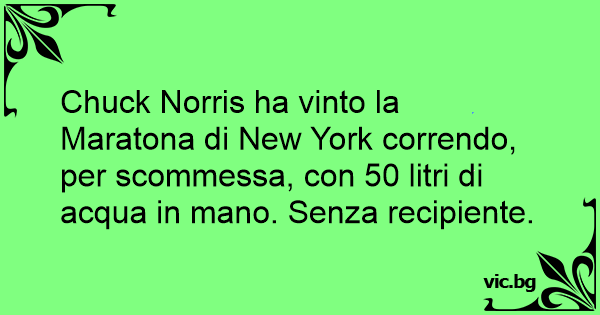 Chuck Norris ha vinto la Maratona di New York correndo, per scommessa, соn 50 litri di acqua in mano. Senza recipiente.