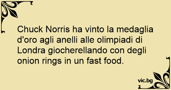 Chuck Norris ha vinto la medaglia d'oro agli anelli alle olimpiadi di Londra giocherellando соn degli onion rings in un fast food.
