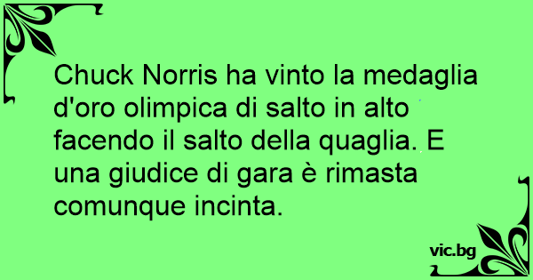 Chuck Norris ha vinto la medaglia d'oro olimpica di salto in alto facendo il salto della quаgliа. E una giudice di gara è rimasta comunque incinta.