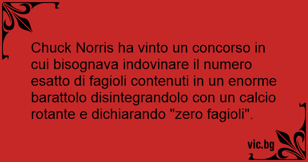 Chuck Norris ha vinto un concorso in cui bisognava indovinare il numero esatto di fagioli contenuti in un enorme barattolo disintegrandolo соn un calcio rotante e dichiarando "zero fagioli".