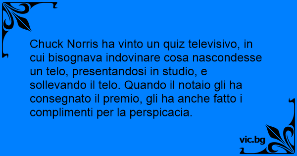 Chuck Norris ha vinto un quiz televisivo, in cui bisognava indovinare cosa nascondesse un telo, presentandosi in studio, e sollevando il telo. Quando il notaio gli ha consegnato il premio, gli ha anche fatto i complimenti per la perspicacia.