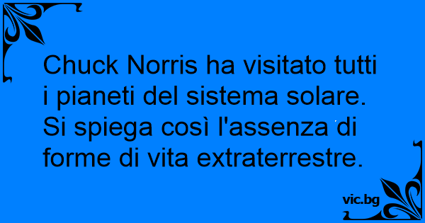 Chuck Norris ha visitato tutti i pianeti del sistema solare. Si spiega così l'assenza di forme di vita extraterrestre.