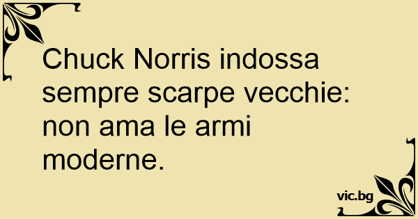 Chuck Norris indossa sempre scarpe vecchie: non ama le armi moderne.