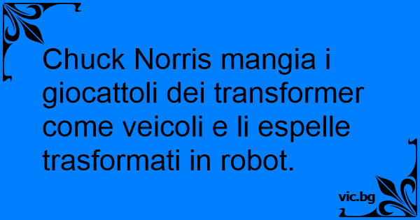 Chuck Norris mangia i giocattoli dei transformer come veicoli e li espelle trasformati in robot.