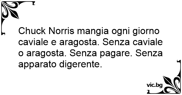 Chuck Norris mangia ogni giorno caviale e aragosta. Senza caviale o aragosta. Senza pagare. Senza apparato digerente.