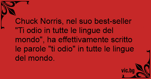 Chuck Norris, nel suo best-seller "Ti odio in tutte le lingue del mondo", ha effettivamente scritto le parole "ti odio" in tutte le lingue del mondo.