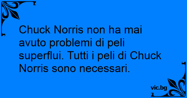 Chuck Norris non ha mai avuto problemi di peli superflui. Tutti i peli di Chuck Norris sono necessari.