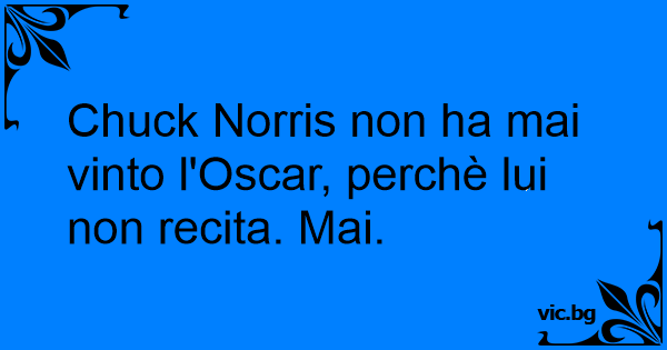 Chuck Norris non ha mai vinto l'Oscar, perchè lui non recita. Mai.