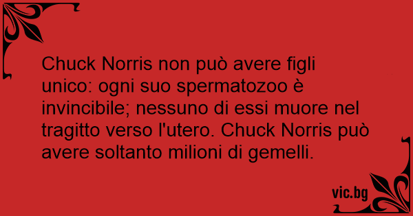 Chuck Norris non può avere figli unico: ogni suo spermatozoo è invincibile; nessuno di essi muore nel tragitto verso l'utero. Chuck Norris può avere soltanto milioni di gemelli.