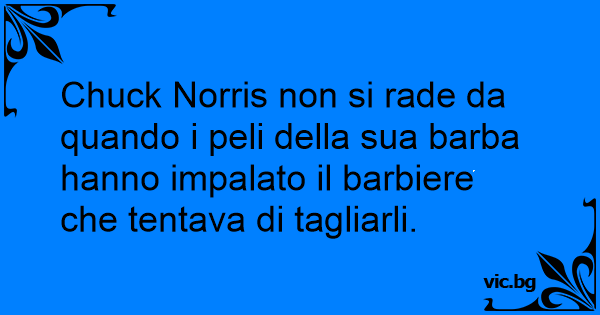Chuck Norris non si rade da quando i peli della sua barba hanno impalato il barbiere che tentava di tagliarli.