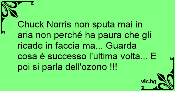 Chuck Norris non sputa mai in aria non perché ha paura che gli ricade in faccia ma... Guarda cosa è successo l'ultima volta... E poi si parla dell'ozono !!!