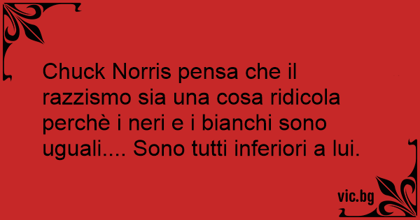 Chuck Norris pensa che il razzismo sia una cosa ridicola perchè i neri e i bianchi sono uguali.... Sono tutti inferiori a lui.