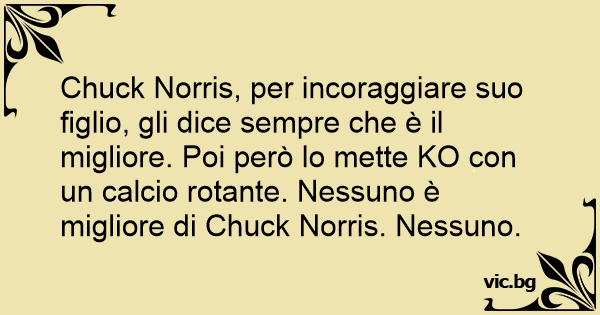 Chuck Norris, per incoraggiare suo figlio, gli dice sempre che è il migliore. Poi però lo mette KO соn un calcio rotante. Nessuno è migliore di Chuck Norris. Nessuno.