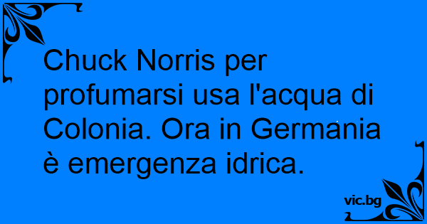 Chuck Norris per profumarsi usa l'acqua di Colonia. Ora in Germania è emergenza idrica.