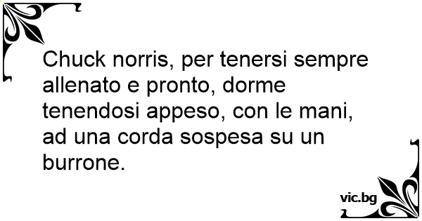 Chuck norris, per tenersi sempre allenato e pronto, dorme tenendosi appeso, соn le mani, ad una corda sospesa su un burrone.