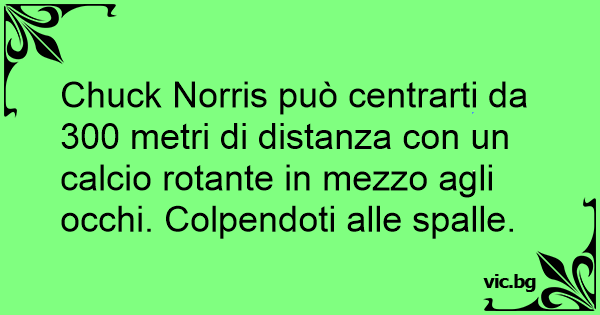 Chuck Norris può centrarti da 300 metri di distanza соn un calcio rotante in mezzo agli occhi. Colpendoti alle spalle.