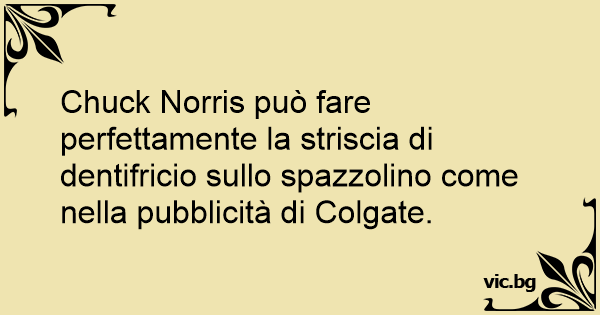Chuck Norris può fare perfettamente la striscia di dentifricio sullo spazzolino come nella pubblicità di Colgate.