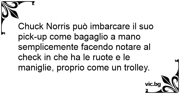 Chuck Norris può imbarcare il suo pick-up come bagaglio a mano semplicemente facendo notare al check in che ha le ruote e le maniglie, proprio come un trolley.