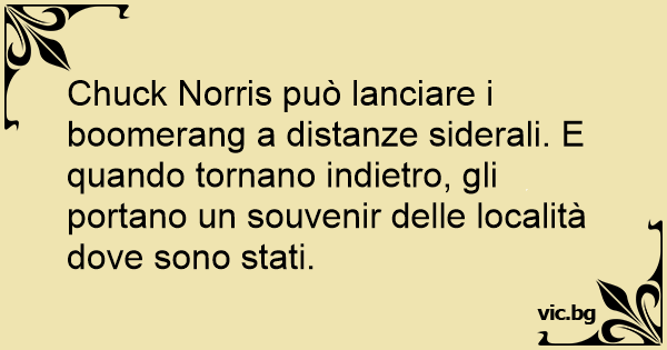 Chuck Norris può lanciare i boomerang a distanze siderali. E quando tornano indietro, gli portano un souvenir delle località dove sono stati.