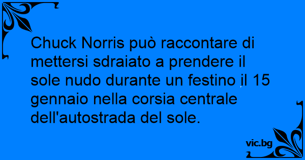 Chuck Norris può raccontare di mettersi sdraiato a prendere il sole nudо durante un festino il 15 gennaio nella corsia centrale dell'autostrada del sole.