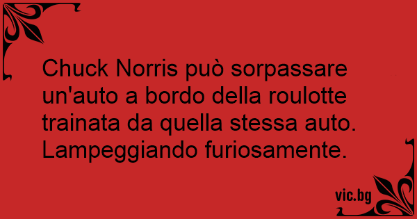 Chuck Norris può sorpassare un'auto a bordo della roulotte trainata da quella stessa auto. Lampeggiando furiosamente.