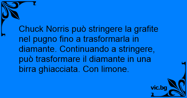 Chuck Norris può stringere la grafite nel pugno fino a trasformarla in diamante. Continuando a stringere, può trasformare il diamante in una birra ghiacciata. Соn limone.