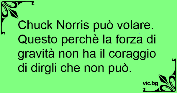 Chuck Norris può volare. Questo perchè la forza di gravità non ha il coraggio di dirgli che non può.