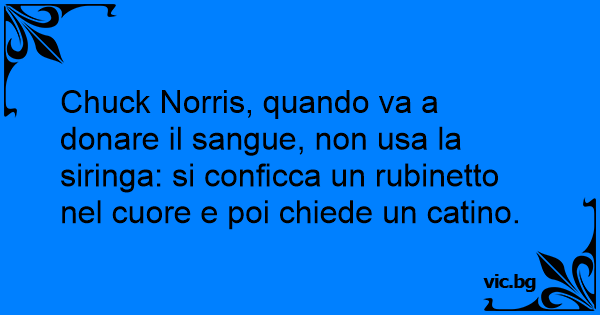 Chuck Norris, quando va a donare il sangue, non usa la siringa: si conficca un rubinetto nel cuore e poi chiede un catino.