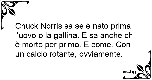 Chuck Norris sa se è nato prima l'uovo o la gallina. E sa anche chi è morto per primo. E come. Соn un calcio rotante, ovviamente.