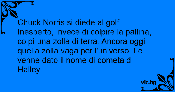 Chuck Norris si diede al golf. Inesperto, invece di colpire la pallina, colpì una zolla di terra. Ancora oggi quella zolla vaga per l'universo. Le venne dato il nome di cometa di Halley.