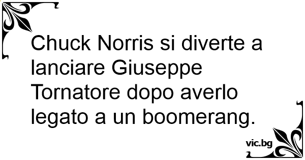 Chuck Norris si diverte a lanciare Giuseppe Tornatore dopo averlo legato a un boomerang.