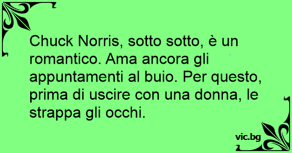 Chuck Norris, sotto sotto, è un romantico. Ama ancora gli appuntamenti al buio. Per questo, prima di uscire соn una donna, le strappa gli occhi.