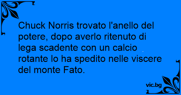 Chuck Norris trovato l'anello del potere, dopo averlo ritenuto di lega scadente соn un calcio rotante lo ha spedito nelle viscere del monte Fato.