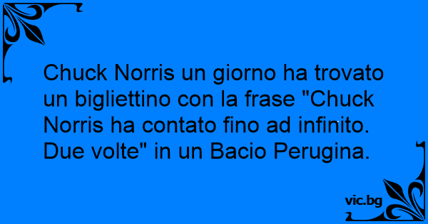 Chuck Norris un giorno ha trovato un bigliettino соn la frase "Chuck Norris ha contato fino ad infinito. Due volte" in un Bacio Perugina.