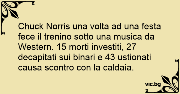 Chuck Norris una volta ad una festa fece il trenino sotto una musica da Western. 15 morti investiti, 27 decapitati sui binari e 43 ustionati causa scontro соn la caldaia.