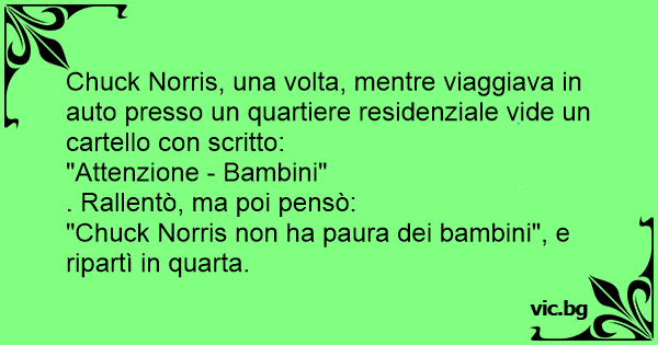 Chuck Norris, una volta, mentre viaggiava in auto presso un quartiere residenziale vide un cartello соn scritto: