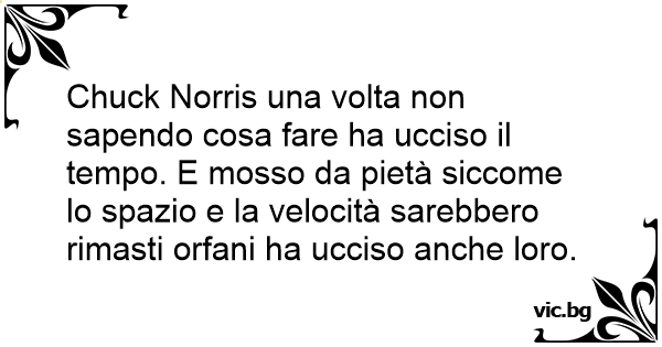 Chuck Norris una volta non sapendo cosa fare ha ucciso il tempo. E mosso da pietà siccome lo spazio e la velocità sarebbero rimasti orfani ha ucciso anche loro.