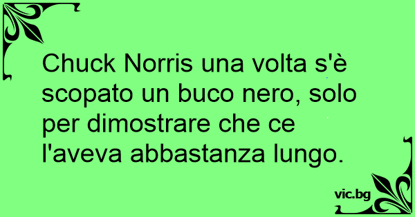 Chuck Norris una volta s'è scopato un buco nero, solo per dimostrare che ce l'aveva abbastanza lungo.