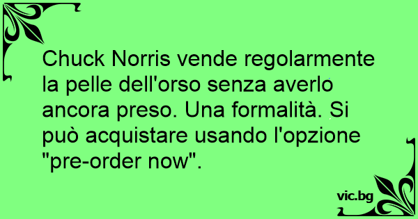 Chuck Norris vende regolarmente la pelle dell'orso senza averlo ancora preso. Una formalità. Si può acquistare usando l'opzione "pre-order now".