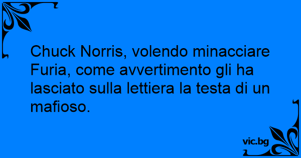 Chuck Norris, volendo minacciare Furia, come avvertimento gli ha lasciato sulla lettiera la testa di un mafioso.