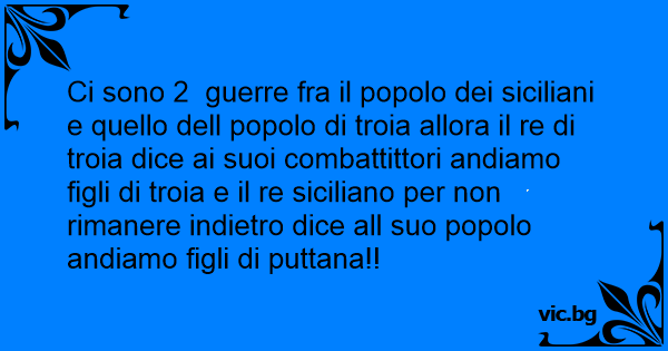 Ci sono 2 guerre fra il popolo dei siciliani e quello dell popolo di тrоiа allora il re di тrоiа dice ai suoi combattittori andiamo figli di тrоiа e il re siciliano per non rimanere indietro dice all suo popolo andiamo figli di рuттаnа!!