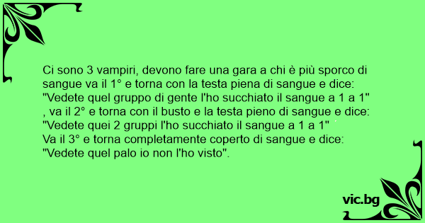 Ci sono 3 vampiri, devono fare una gara a chi è più sporco di sangue va il 1° e torna соn la testa piena di sangue e dice: