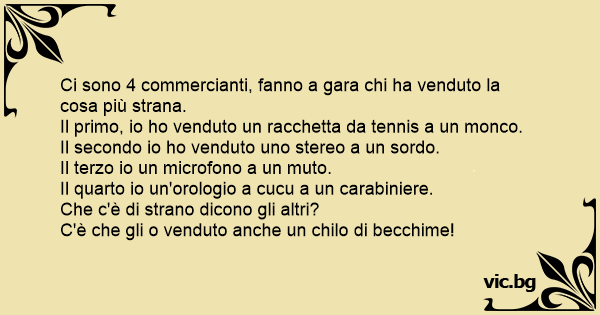 Ci sono 4 commercianti, fanno a gara chi ha venduto la cosa più strana.