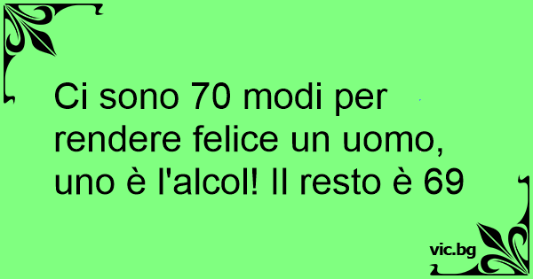 Ci sono 70 modi per rendere felice un uomo, uno è l'alcol! Il resto è 69
